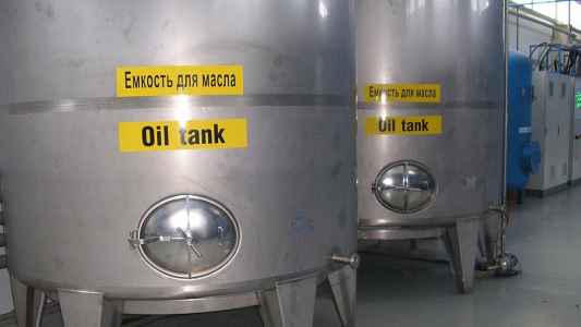 Для хранения небольших объемов масла (≈ до 100 м3) используются вертикальные цилиндрические емкости диаметром до 2,5 м (беспроблемная транспортировка на еврофурах) с эффективным объемом 20 м3. Для средних объемов хранения масла до 1000 м3 используются горизонтальные цилиндрические емкости диаметром 2,5 м с эффективным объемом 50 м3. Если необходимо несколько таких емкостей, то их можно разместить в два этажа. Поверхности емкостей, вентили, арматура и др. части маслохранилища всегда изготовлены из материалов, разрешенных для применения в пищевой промышленности, которые отличаются стабильностью свойств и высокой устойчивостью.